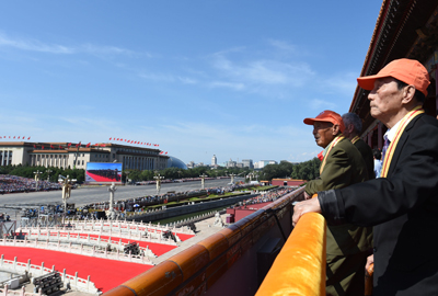 “九三閱兵”這天,李占瑞被安排在天安門城樓的第一排。雖然經過了前兩天的車馬勞頓和活動安排,李占瑞依舊神采奕奕。“天安門第一排有我的座位,還寫著我的名字。我扶著欄桿,上面下面都看見了,看的很清楚。開始是直升機,有200多架,后來是戰斗機、轟炸機、運輸機,還有無人駕駛飛機。我都看到了。還有導彈,無數的導彈。這都是國家的國防武器,可以防止敵人侵略呀!”李占瑞爬滿褶皺的臉上閃著光。