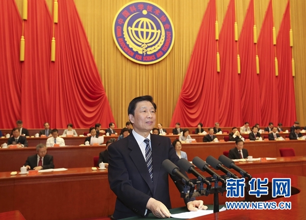 6月2日,中國(guó)科學(xué)技術(shù)協(xié)會(huì)第九次全國(guó)代表大會(huì)在北京閉幕。中共中央政治局委員、國(guó)家副主席李源潮出席閉幕會(huì)議并講話。 新華社記者 丁林 攝