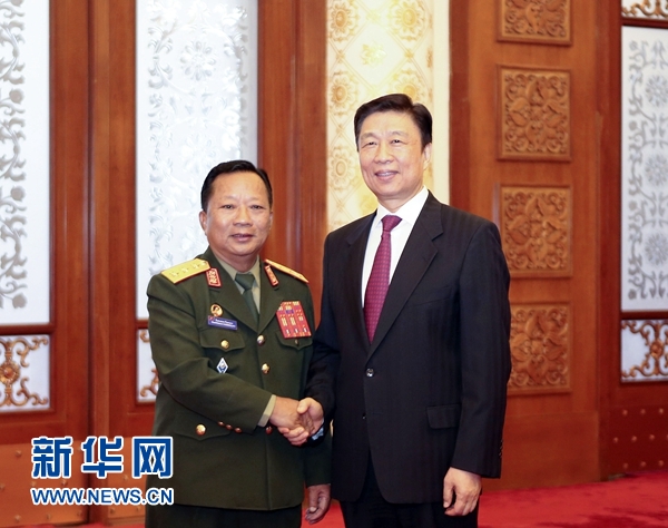 7月19日,中共中央政治局委員、國家副主席李源潮在北京會(huì)見老撾人民革命黨中央政治局委員、國防部長占沙蒙。 新華社記者丁林?jǐn)z