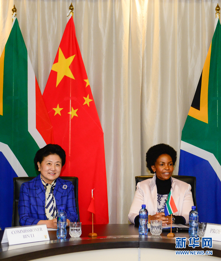 ??? 4月25日,國務院副總理劉延東在比勒陀利亞會見南非外長馬沙巴內。 新華社記者翟健嵐攝