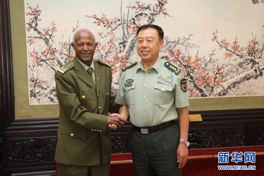 8月18日,中央軍委副主席范長龍?jiān)诒本妬碓L的埃塞俄比亞國防軍總參謀長薩莫拉·尤內(nèi)斯。 新華社記者 劉芳 攝