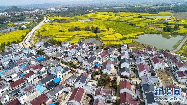 這是在江蘇省南京市高淳區(qū)椏溪國(guó)際慢城拍攝的油菜花田和民居(3月28日攝)。新華社記者 李響 攝