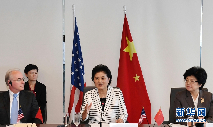 當(dāng)?shù)貢r(shí)間9月27日,國(guó)務(wù)院副總理劉延?xùn)|(中)在美國(guó)華盛頓戰(zhàn)略與國(guó)際問(wèn)題研究中心出席中美衛(wèi)生合作研討會(huì)。新華社記者殷博古攝
