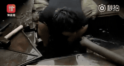 鄭州某地因井蓋砸斷水管造成突發漏水