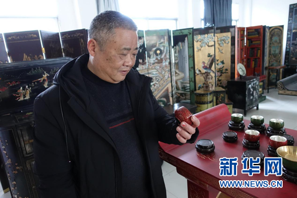 新華網黃山2月23日電(卓越)漆器,即用漆涂在各種器物的表面上所制成的日常器具及工藝品、美術品,是中國古代在化學工藝及工藝美術方面的重要發明。福州脫胎漆器,廈門髹金漆絲漆器,廣東暈金漆器,揚州螺鈿漆器,北京剔紅漆器......在眾多地域制漆技藝中,徽漆作品更以其復雜的工藝、豐富變幻的肌理受到世人的關注,并被收入國家非物質文化遺產名錄。春節期間,跟隨“非遺”傳承人、黃山市徽漆工藝有限公司總經理奚建輝一起,記者近距離感受了徽漆工藝那古老而神奇的魅力。