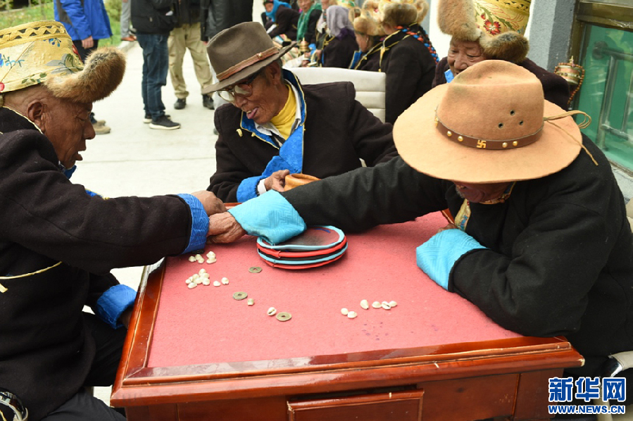 老人們在五保戶集中供養(yǎng)服務(wù)中心開心地玩牌(5月11日 攝)。新華網(wǎng)記者 陳琳 攝
