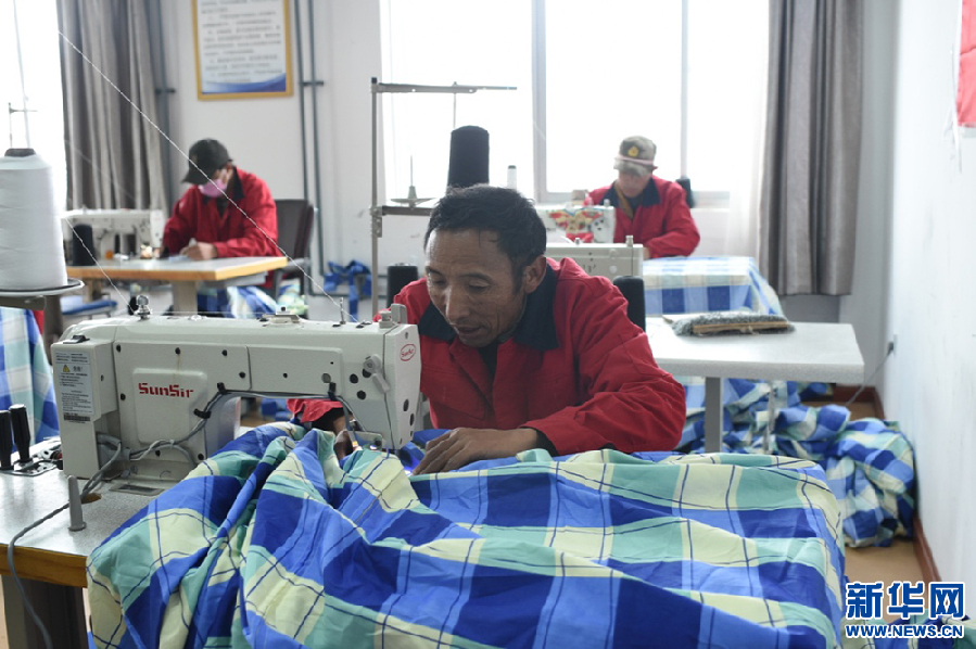 走出五保戶集中供養(yǎng)服務(wù)中心,對面就是錯那縣殘疾人就業(yè)中心。成立于2016年的殘疾人就業(yè)中心目前幫助16名建檔立卡貧困戶殘疾人解決了就業(yè)問題。每位殘疾人通過5個月的免費培訓(xùn)就可以正式上崗,為一些學(xué)校制作校服,為各部門制作彩旗、藏裝、窗簾、救災(zāi)帳篷、旅游特色禮品等。每人每月能拿到2000-3500元不等的工資。