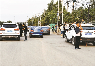 北青報記者在通胡路宋梁路交叉路口探訪看到,從東夏園地鐵站一出門,不少“黑車”司機(jī)招呼乘客去往燕郊等地。附近等待“拉活兒”的車輛也停滿了路邊的各個角落,而路上外埠車通過也成為主流。