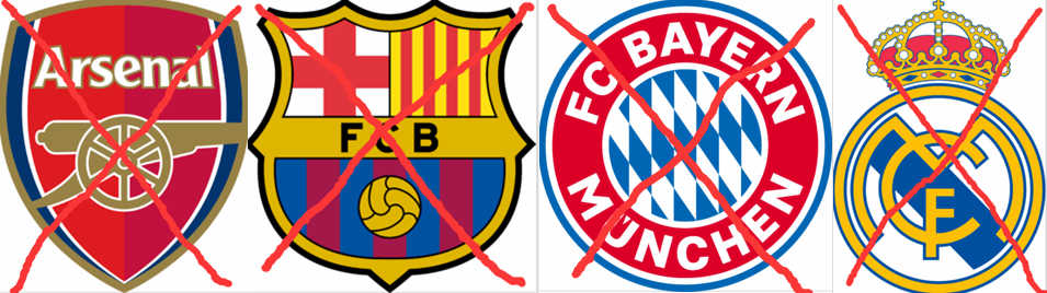 沒有阿森納,沒有巴塞羅那,沒有拜仁慕尼黑,沒有皇家馬德里……