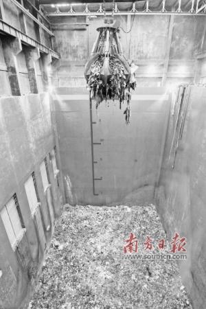 抓斗將發(fā)酵的垃圾抓起,準(zhǔn)備送入焚燒爐。