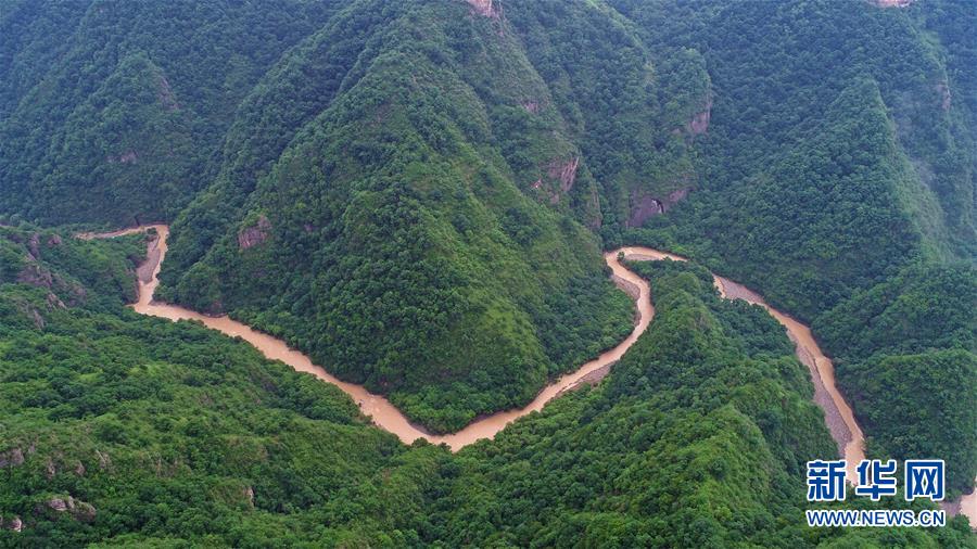 寧夏固原市涇源縣臥龍山公園(7月19日無人機拍攝)。 新華社記者 王鵬 攝