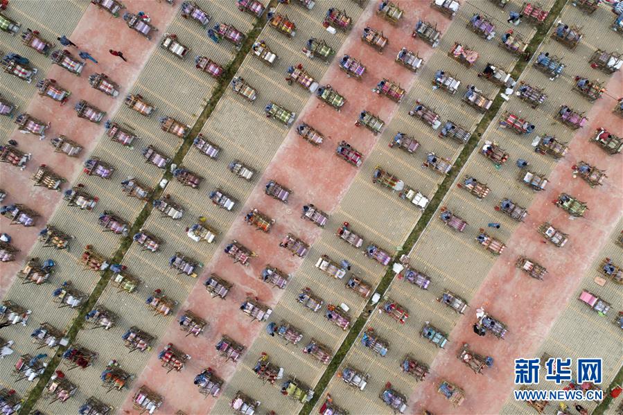 河北省沙河市塔子峪村及周邊村莊的801名織女同時飛梭織布