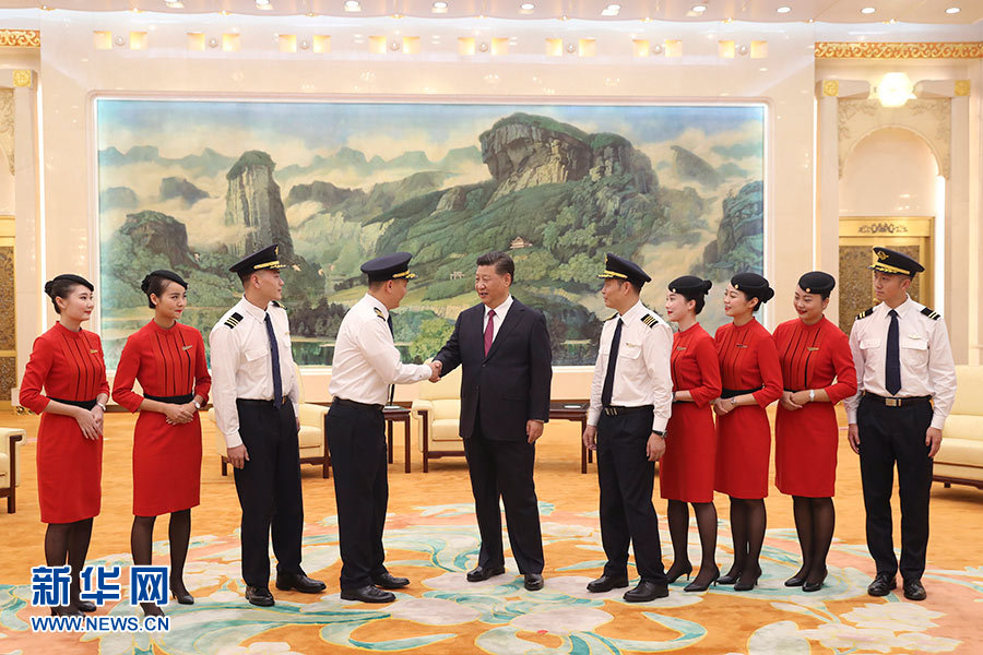 習近平在會見四川航空“中國民航英雄機組”全體成員時強調
