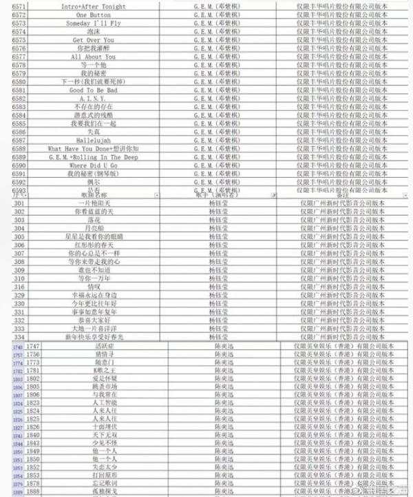 附件中共列出6609部要求下架的音樂電視作品。記者發現,陳奕迅的《十年》《圣誕結》、信樂團的《死了都要愛》等大家耳熟能詳、幾乎是KTV必點曲目,也都在“下架”之列。