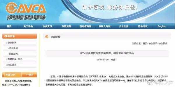 在公告中,音像著作權集體管理協會表示,為了降低已經獲得該協會許可的各使用者的法律風險,要求卡拉OK終端生產商、向音集協繳費的卡拉OK經營者,在10月31號前,將公告附件中列出的音樂電視作品刪除。從11月1號起,如因為沒有刪除所列音樂電視作品、而遭權利人主張權利,使用者需要自行承擔法律后果。