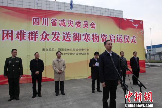 2018年冬向四川全省受災困難群眾發送御寒物資啟運儀式,11月23日上午在四川省救災物資儲備中心舉行。
