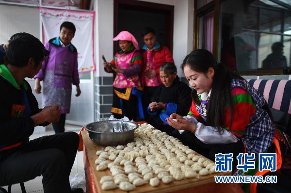 2月4日,松德村五社村民李玉花(右一)和家人一同包餃子。當(dāng)日是除夕,青海省海東市互助土族自治縣丹麻鎮(zhèn)松德村五社的40戶村民在新居中喜迎新春。2018年,這40戶村民通過(guò)易地扶貧搬遷政策住進(jìn)新房并順利實(shí)現(xiàn)脫貧。 新華社記者 張宏祥 攝