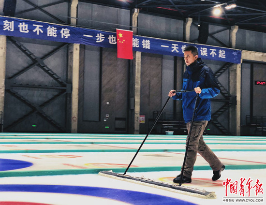 因冰壺比賽對冰面要求極高,能完成冰壺場地掃冰、制冰的劉博強任務繁重,在運動隊訓練密集時,他常在冰場一待就是一天。但他“要求”自己得像打了雞血一般,“我粗略打聽了一下,能把冰壺冰面做好的制冰師,全國不超過兩位數,所以,我盼著參與冬奧賽時的冰面維護,要能實現,我人生至高點也就在那兒了吧。”
