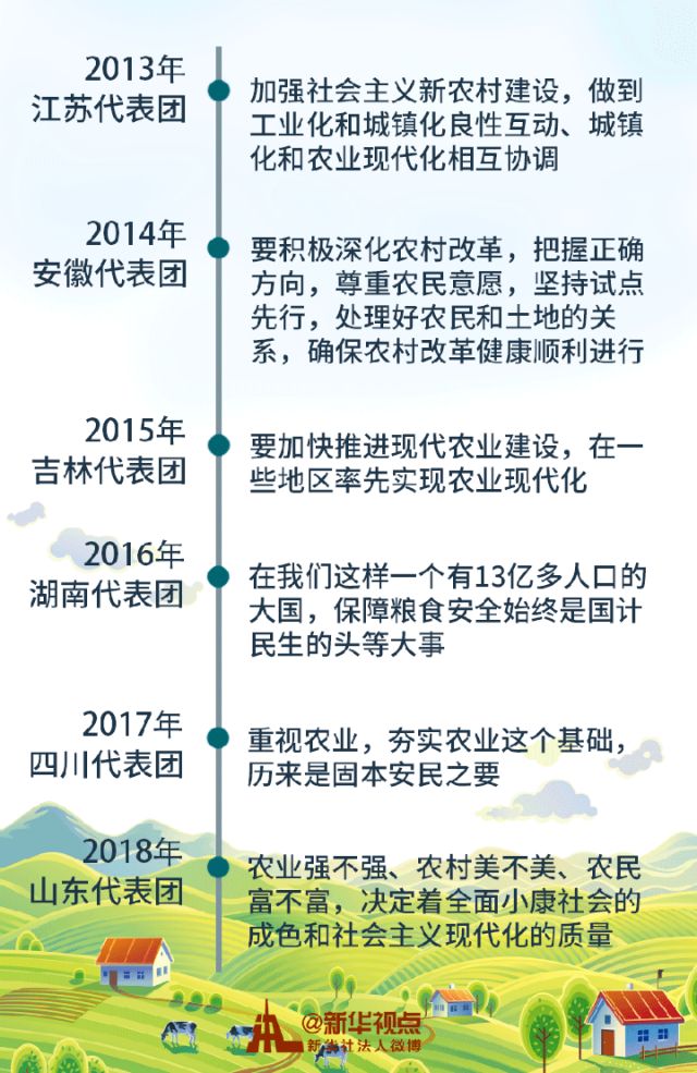 黨的十八大以來,每年全國兩會期間下團參加審議,習近平總書記都會談到“三農”問題。語重心長,充滿深情。
