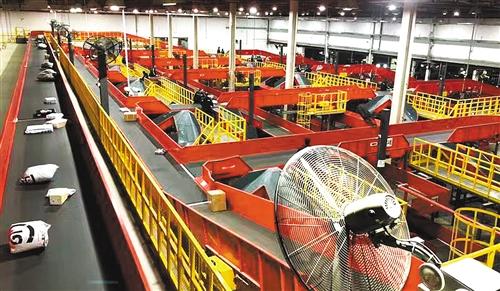 上圖 順豐速運(yùn)采用雙層自動(dòng)分揀系統(tǒng),大大提高電子單識(shí)別效率。