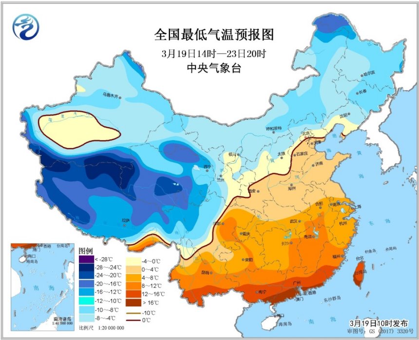 張濤:這次冷空氣過程體現出降溫幅度大和影響范圍廣的主要特點。由于前期氣溫較高,在這次天氣過程中,各地基礎氣溫不會太低,氣溫變化帶來的影響較大,但公眾感覺的寒冷程度不會太大。中央氣象臺已于3月19日10時發布寒潮藍色預警,提醒公眾注意氣溫變化。
