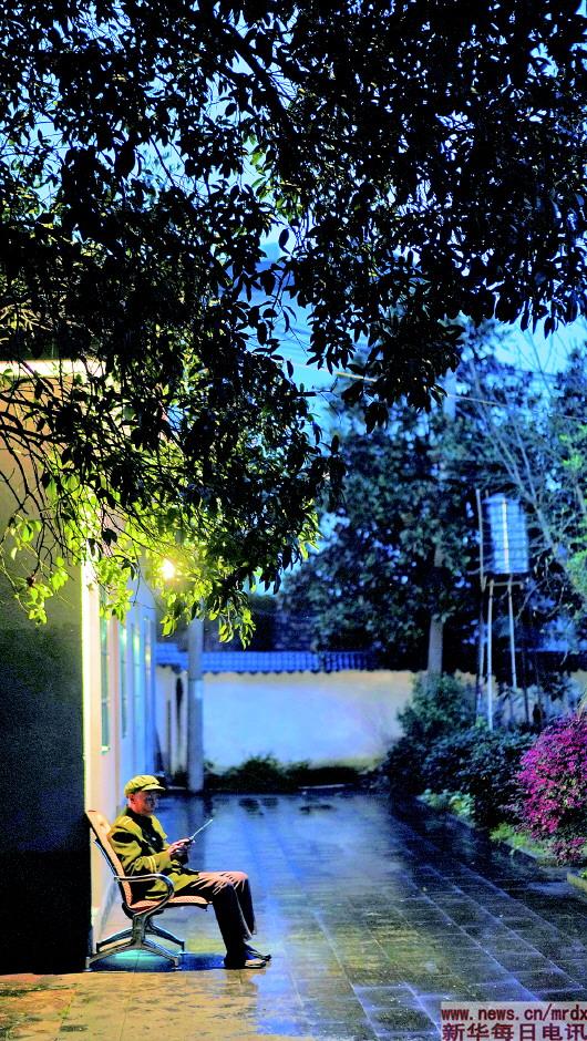 3月27日傍晚,程樟柱在紀念館內聽收音機。