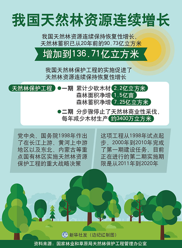圖表:我國天然林資源連續(xù)增長 新華社發(fā) 邊紀(jì)紅 制圖