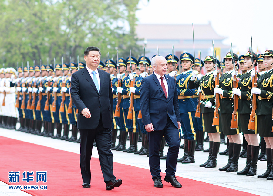 4月29日,國家主席習近平在北京人民大會堂同瑞士聯邦主席毛雷爾舉行會談。這是會談前,習近平在人民大會堂東門外廣場為毛雷爾舉行歡迎儀式。 新華社記者 劉衛兵 攝