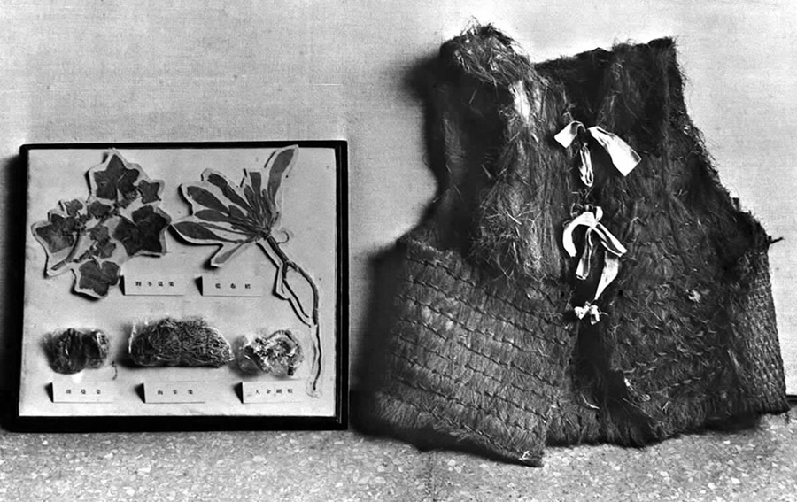 這就是紅軍長征時吃過的野菜標本和穿過的棕背心。