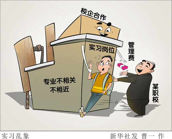 業(yè)內(nèi)人士認(rèn)為,一些職業(yè)學(xué)校將學(xué)生隨意送到一些與專(zhuān)業(yè)無(wú)關(guān)的企業(yè)實(shí)習(xí),甚至以此牟利,這背離了職業(yè)教育的初衷。教育、人社等主管部門(mén)應(yīng)加大對(duì)職校實(shí)習(xí)的監(jiān)管力度,斬?cái)嗦毿?shí)習(xí)背后的利益鏈條,防止“校企合作”成為“校企交易”。