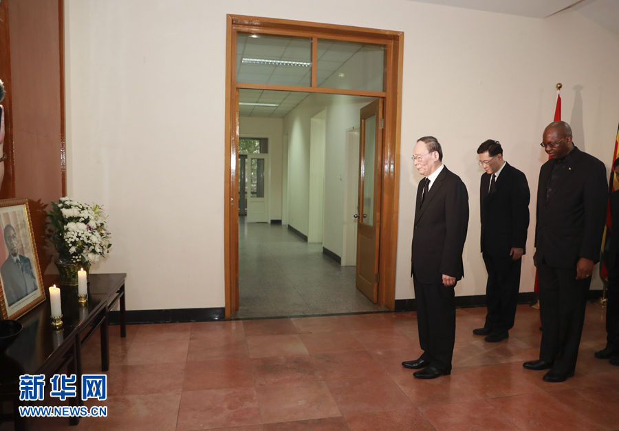 王岐山在穆加貝遺像前肅立默哀,并在吊唁簿上題詞,代表中國政府和人民對穆加貝的逝世表示最深切的哀悼,向津巴布韋政府和人民以及穆加貝的親屬表示最誠摯的慰問。王岐山表示,穆加貝是津巴布韋和非洲杰出政治家和民族解放運動領導人,為推動中津、中非友好作出了卓越貢獻。中方珍視中津傳統友誼,愿同津巴布韋政府和人民一道,推動中津全面戰略合作伙伴關系不斷向前發展。相信在姆南加古瓦總統領導下,津巴布韋人民一定會化悲痛為力量,在實現國家穩定和建設發展道路上不斷取得新的更大成就。