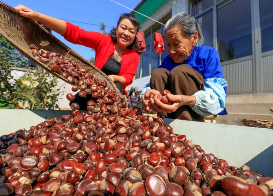 8月23日,河北遵化。侯家寨鄉大屯村農民懷著喜悅的心情收獲板栗。作者:天下人