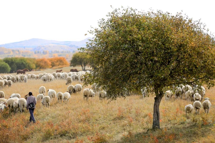 9月24日,內蒙古赤峰。牧民在烏蘭布統草原放羊。作者:瑞鐘