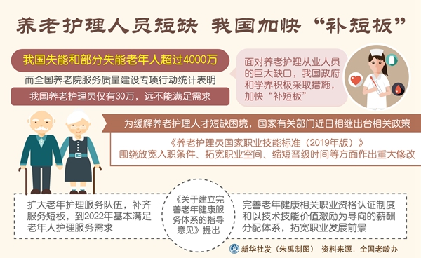 新華社北京11月5日電(記者田曉航)來自全國老齡辦的數(shù)據(jù)顯示,我國失能和部分失能老年人超過4000萬,而全國養(yǎng)老院服務質(zhì)量建設專項行動統(tǒng)計表明,我國養(yǎng)老護理員僅有30萬,遠不能滿足需求。面對養(yǎng)老護理從業(yè)人員的巨大缺口,我國政府和學界積極采取措施,加快“補短板”。