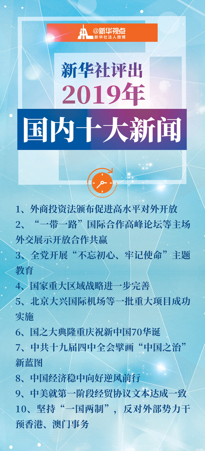 29日,新華社評出的2019年國內十大新聞新鮮出爐。