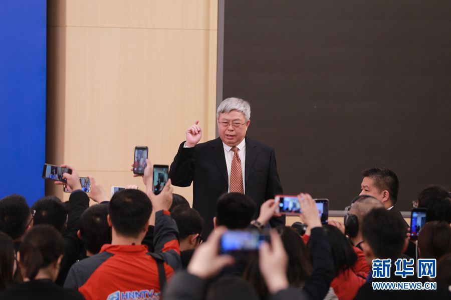 十三屆全國人大二次會議新聞中心于3月7日10時50分在梅地亞中心新聞發布廳舉行記者會,邀請國務院扶貧開發領導小組辦公室主任劉永富就“攻堅克難——堅決打贏脫貧攻堅戰”相關問題回答中外記者提問。圖為記者會結束后劉永富與記者們交流。新華網?劉廈 攝