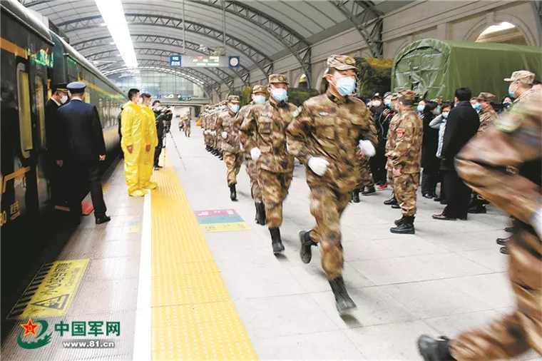 1月26日11時24分,T184列車載著解放軍緊急調撥的第一批防疫物資緩緩駛來,停靠在漢口火車站站臺。