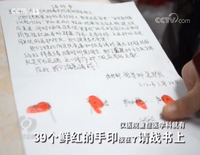 不到一天的時間,四川南充川北醫學院附屬醫院僅醫院重癥醫學科就有39個鮮紅的手印按在了請戰書上。