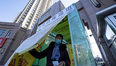 在四川仁壽聯營汽車客運站,工作人員在上車之前為乘車農民工測量體溫(2月11日攝)。 新華社記者胡旭攝