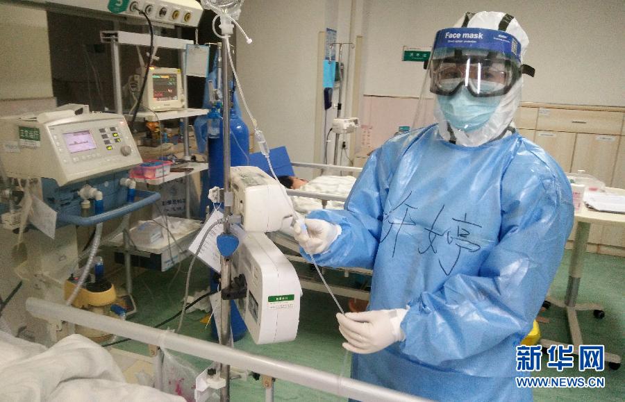 在武漢市第九醫院重癥監護室,共產黨員、西安市胸科醫院ICU主管護師許婷在工作(2月1日攝)。 新華社發
