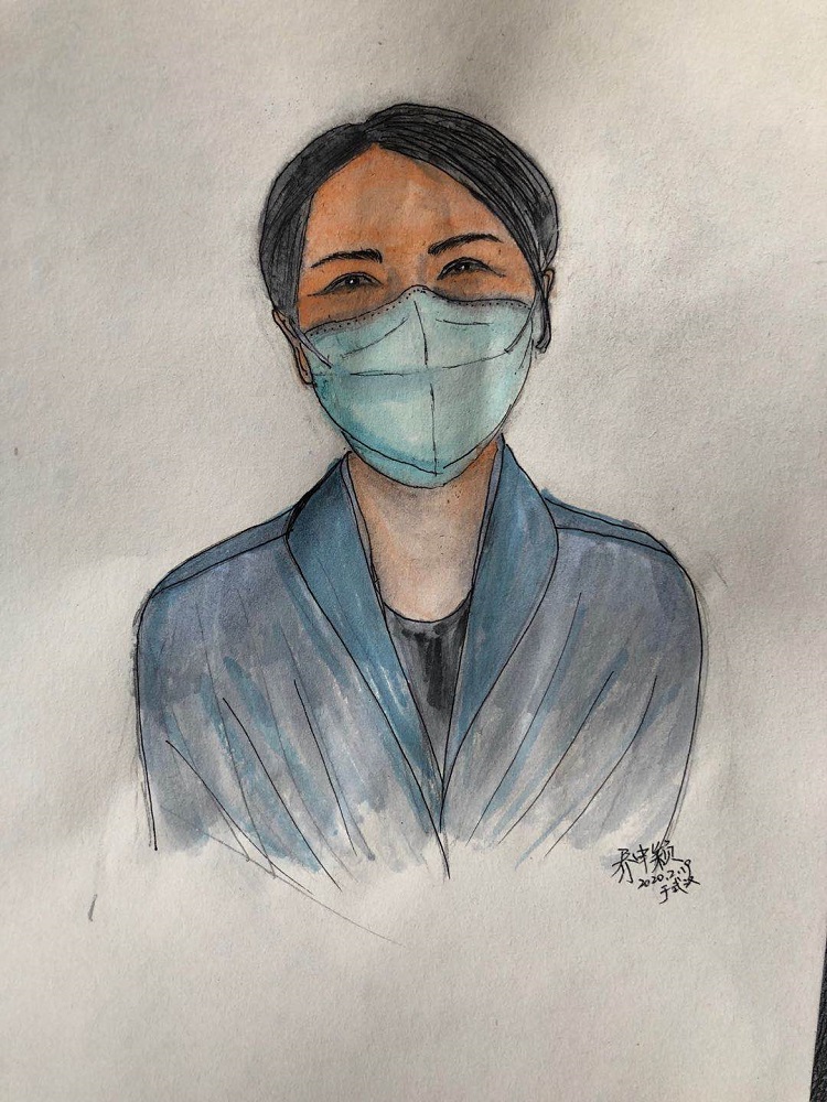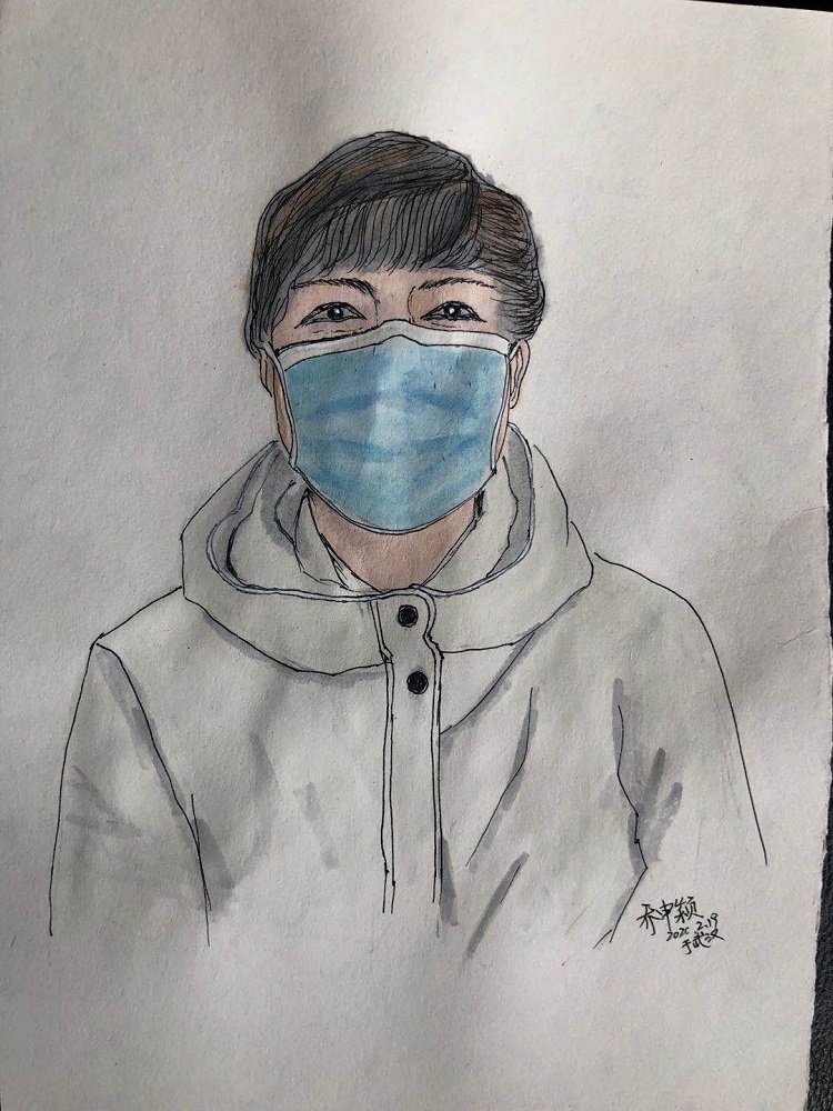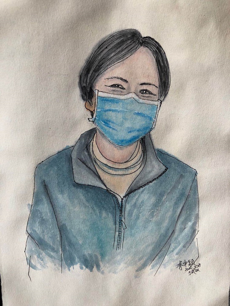 剛開始就是正常的寫稿拍視頻,隨著時間的推移,就特別想畫畫。這個城市里充滿了觸動心靈的瞬間,可能是一個笑臉,可能是一個手勢。我總覺得光是寫下來、拍下來,還遠遠不夠,只有把它畫下來,才真正能把我那一刻的感動也一起收藏起來。當時武漢根本買不到顏料,我請同事幫忙從北京帶過來,2月16號的時候開始畫。第一個想到的就是采訪過的醫護人員的笑臉。因為大家都崩得很緊,好多醫護人員采訪中說著說著就哭了。雖然對采訪來說可能是件好事,但我總感覺很愧疚,覺得為個采訪讓人又難過一次。后來就形成一個習慣,每次我都要問一個問題:今天有沒有開心的事呀?或者說:咱換個話題,說點高興的!他們給了我各種各樣的答案,但是不管是為什么高興,那一刻他們的笑容都特別燦爛特別美好。所以我把他們的笑畫了下來,希望更多的人能看到,能從中汲取力量。
