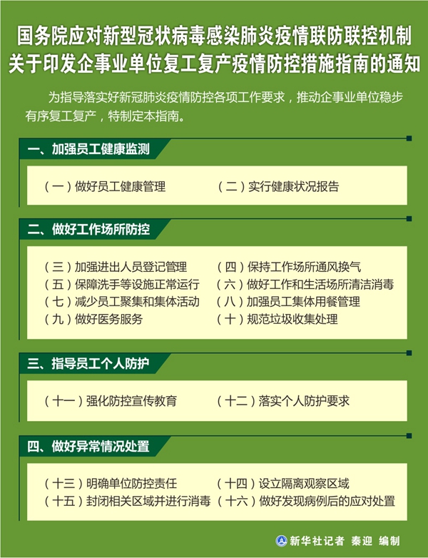 國務院聯防聯控機制印發《企事業單位復工復產疫情防控措施指南》-新華網
