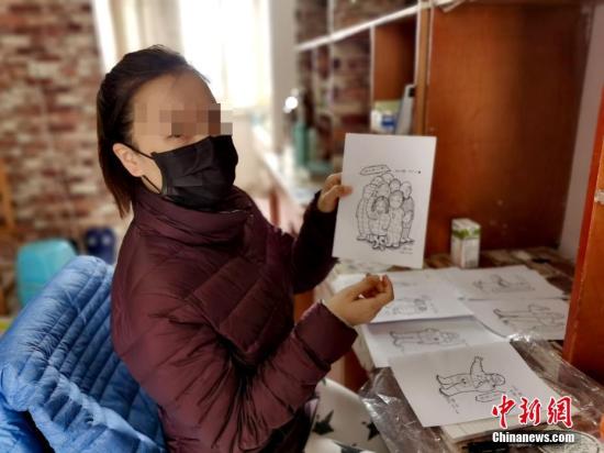 治愈出院患者展示自己創作的漫畫。 安源 攝