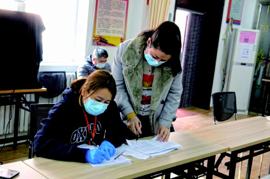 2月8日,盧溝橋街道工委書記高文娟在民岳家園社區回復“12345”群眾訴求,與社區工作人員一同記錄回復時間及訴求人反饋意見。 采訪對象供圖