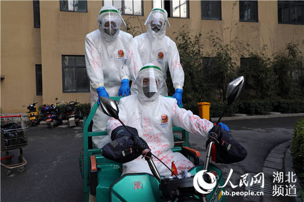 為滿足居民日常生活所需,代睿和隊員們騎著三輪車,按照物資清單和防護服上的記錄,一樣一樣地采購,平均每天要運送100余份物資,訂購的大米、各類水果,一趟趟跑、一袋袋扛。密不透風的防護服內(nèi),早已渾身濕透,汗從防護服的袖子直往外流。
