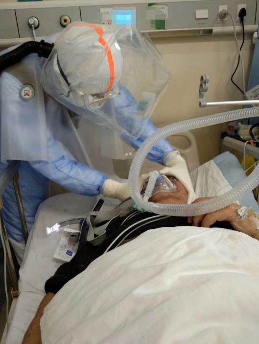 其次,因為新冠肺炎的重癥病人耐受時間短,對醫護人員也必須減少暴露時間,平常3-5分鐘的插管時間,現在必須在兩分鐘內完成。看到病人痛苦無助的樣子,凌肯沒有時間害怕,在陳向東的指導下,他迅速冷靜,與同事兩人,一個推麻藥,一個負責插管。整個過程麻利干脆,用時90秒。除去60秒打麻藥的過程,真正插管只用了30秒。