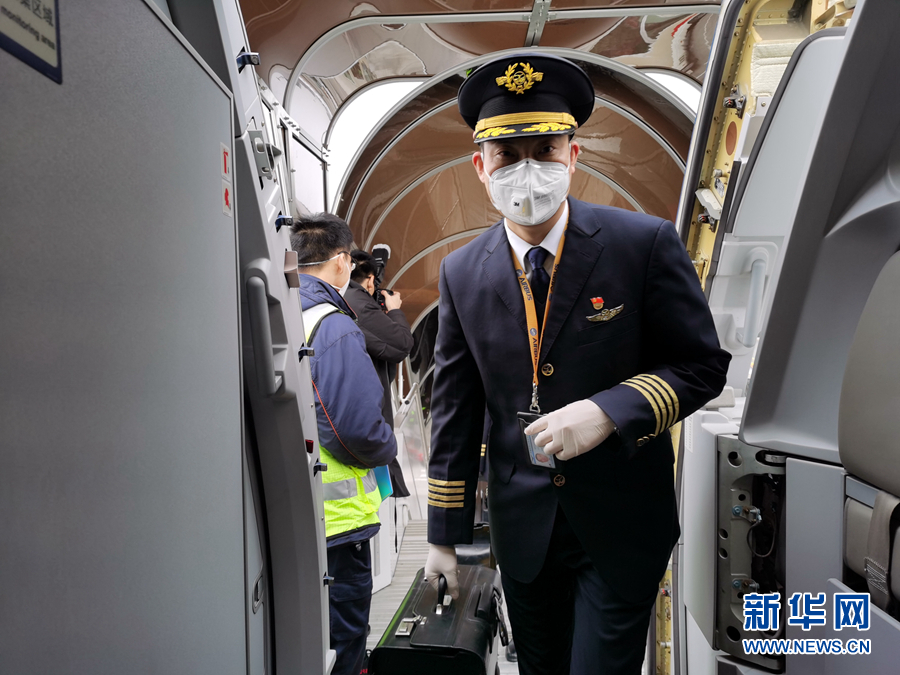 2月2日,全國“最美退役軍人”劉傳健主動申請執飛運輸任務,護送四川第三批支援湖北醫療隊醫護人員和物資赴武漢。 新華社發