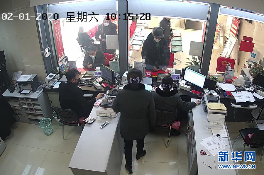 2月1日,在江蘇省宿遷市郵政儲蓄銀行泗洪上塘鎮支行,王玉齊老人以“退伍老兵”的名義向武漢紅十字會捐款9900元。 新華社發(截屏照片)
