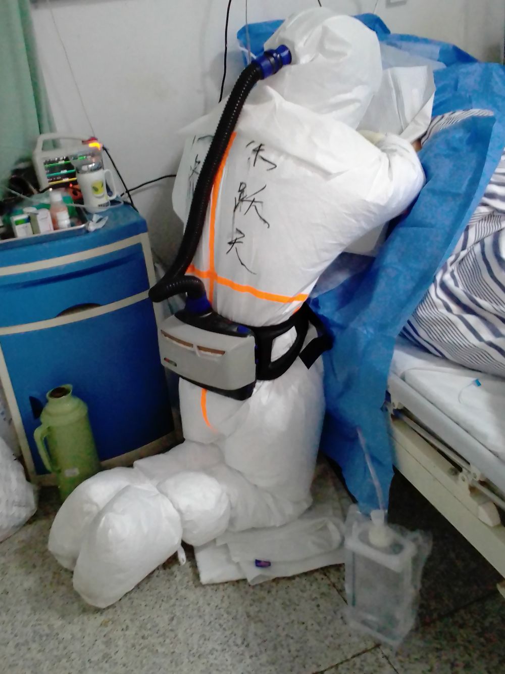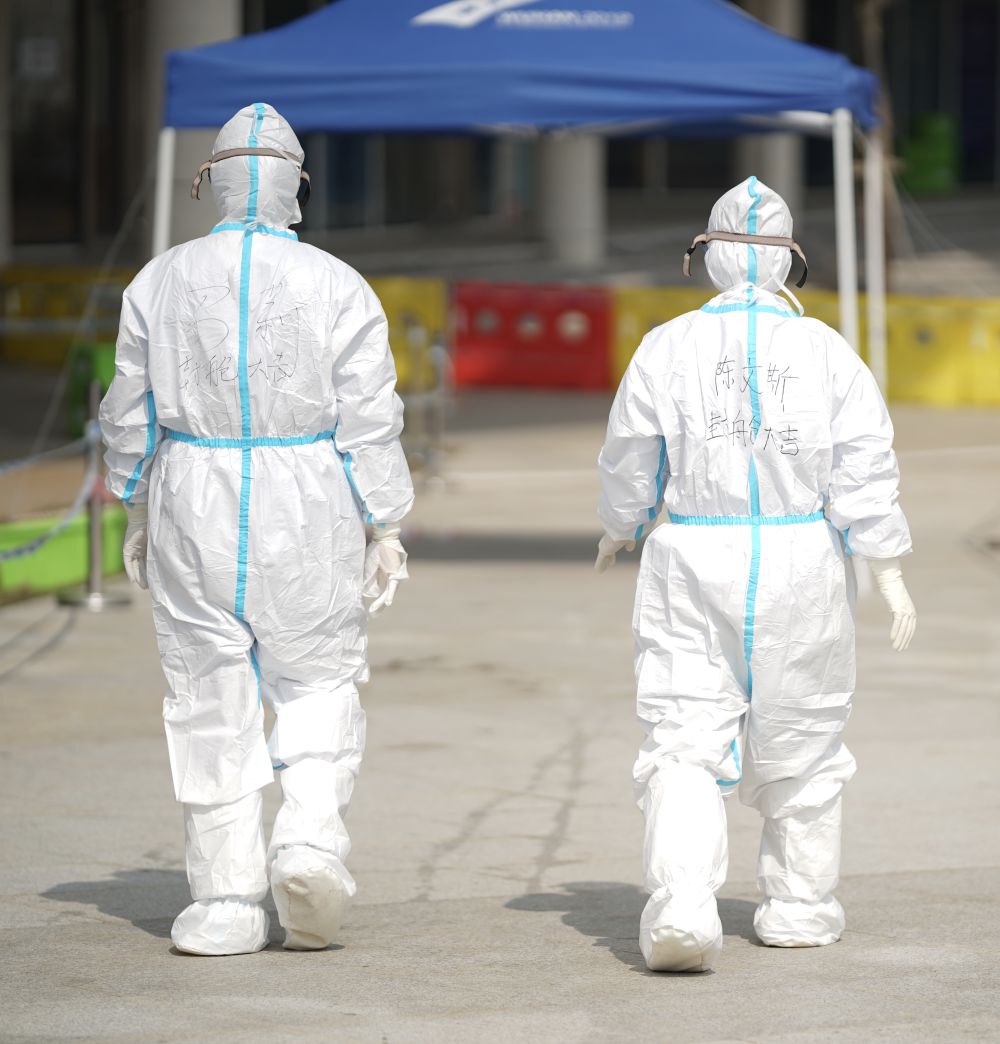 他們的防護(hù)服下面全是汗水