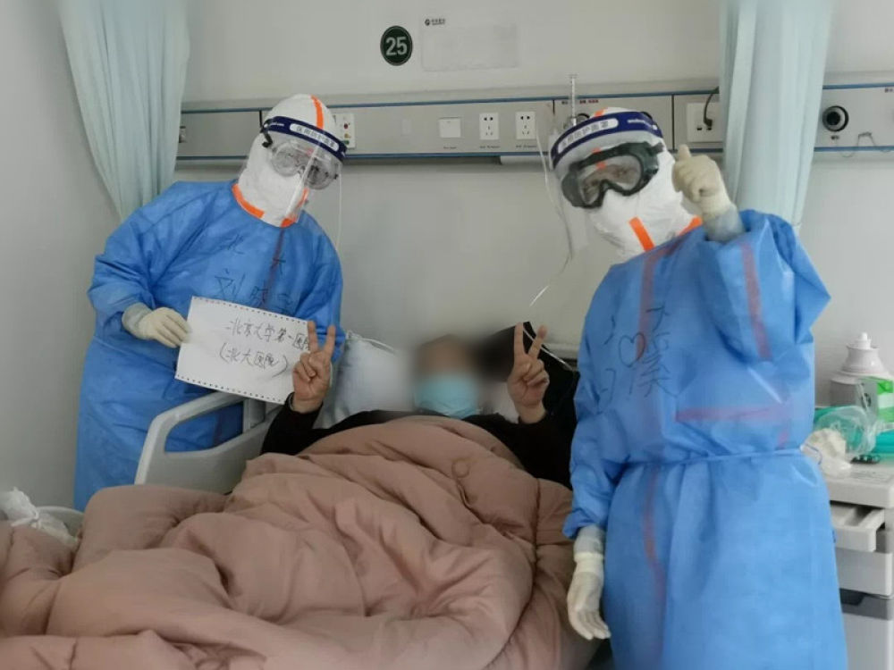 劉曉宇與同事為病人加油。